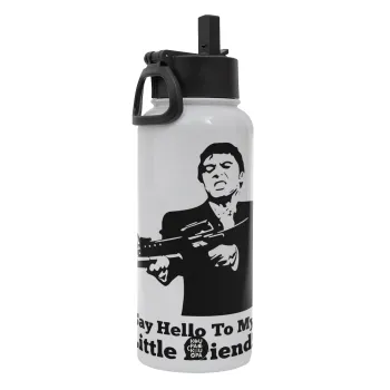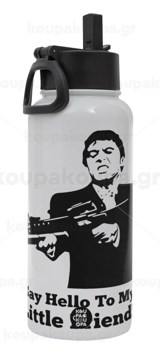 Scarface, Μεταλλικό παγούρι θερμός Λευκό με καλαμάκι και χερούλι (Stainless steel), διπλού τοιχώματος, 950ml
