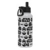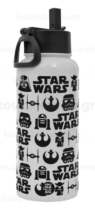 Star Wars Pattern, Μεταλλικό παγούρι θερμός Λευκό με καλαμάκι και χερούλι (Stainless steel), διπλού τοιχώματος, 950ml