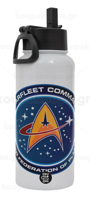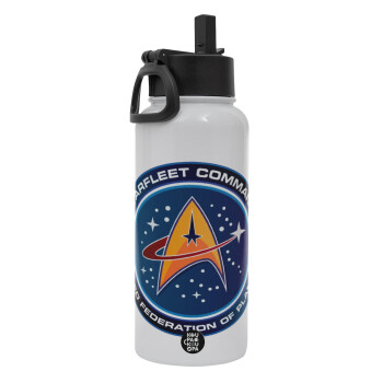 Starfleet command, Μεταλλικό παγούρι θερμός Λευκό με καλαμάκι και χερούλι (Stainless steel), διπλού τοιχώματος, 950ml
