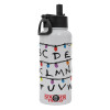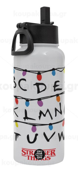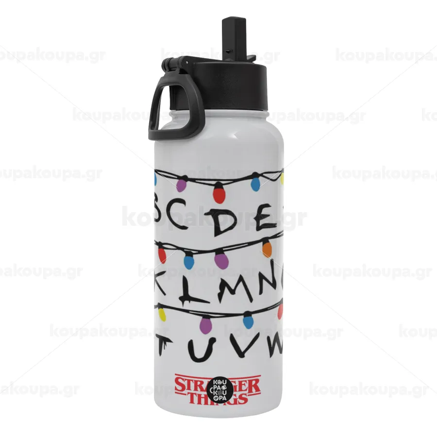 Stranger Things ABC, Μεταλλικό παγούρι θερμός Λευκό με καλαμάκι και χερούλι (Stainless steel), διπλού τοιχώματος, 950ml