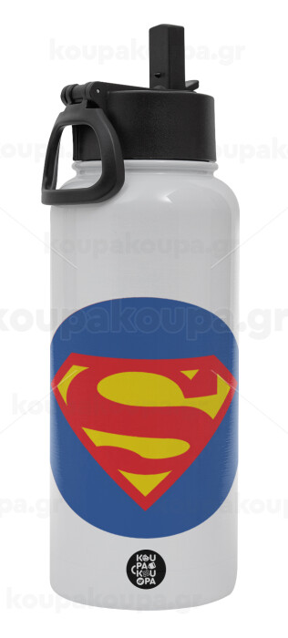 Superman, Μεταλλικό παγούρι θερμός Λευκό με καλαμάκι και χερούλι (Stainless steel), διπλού τοιχώματος, 950ml