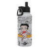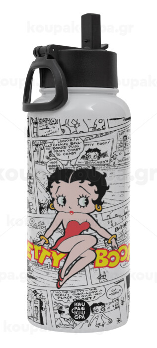 Betty Boop, Μεταλλικό παγούρι θερμός Λευκό με καλαμάκι και χερούλι (Stainless steel), διπλού τοιχώματος, 950ml