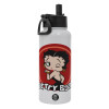 Betty Boop kiss, Μεταλλικό παγούρι θερμός Λευκό με καλαμάκι και χερούλι (Stainless steel), διπλού τοιχώματος, 950ml