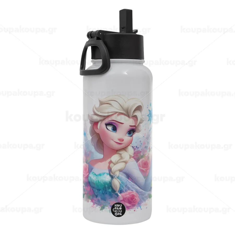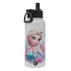 Elsa Princess, Μεταλλικό παγούρι θερμός Λευκό με καλαμάκι και χερούλι (Stainless steel), διπλού τοιχώματος, 950ml
