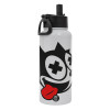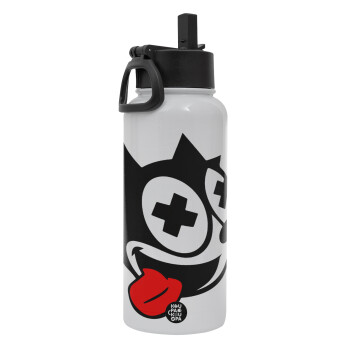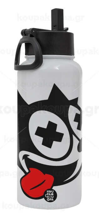 helix the cat, Μεταλλικό παγούρι θερμός Λευκό με καλαμάκι και χερούλι (Stainless steel), διπλού τοιχώματος, 950ml