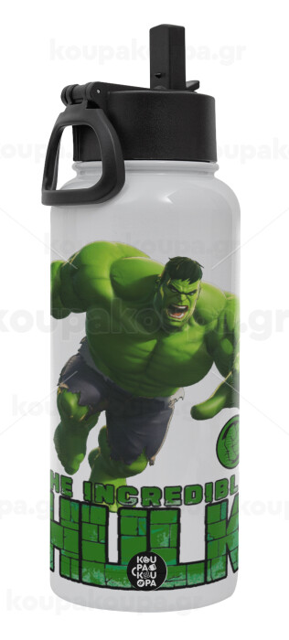 Hulk, Μεταλλικό παγούρι θερμός Λευκό με καλαμάκι και χερούλι (Stainless steel), διπλού τοιχώματος, 950ml