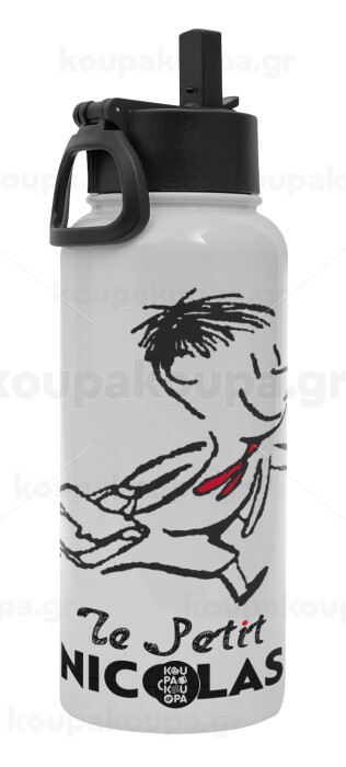 Le Petit Nicolas, Μεταλλικό παγούρι θερμός Λευκό με καλαμάκι και χερούλι (Stainless steel), διπλού τοιχώματος, 950ml