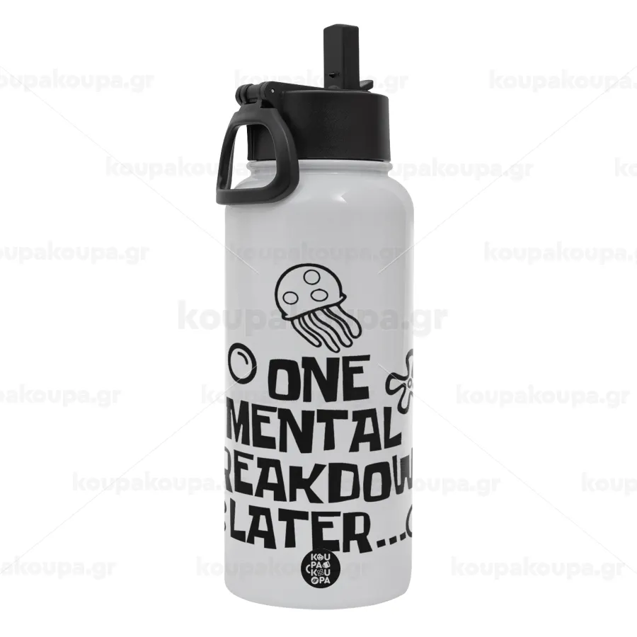 one mental breakdown later bob spongebob, Μεταλλικό παγούρι θερμός Λευκό με καλαμάκι και χερούλι (Stainless steel), διπλού τοιχώματος, 950ml