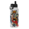 One Piece, Μεταλλικό παγούρι θερμός Λευκό με καλαμάκι και χερούλι (Stainless steel), διπλού τοιχώματος, 950ml