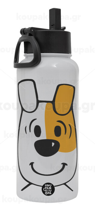 reksio bolek i lolek, Μεταλλικό παγούρι θερμός Λευκό με καλαμάκι και χερούλι (Stainless steel), διπλού τοιχώματος, 950ml