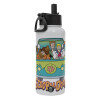 Scooby Doo car, Μεταλλικό παγούρι θερμός Λευκό με καλαμάκι και χερούλι (Stainless steel), διπλού τοιχώματος, 950ml