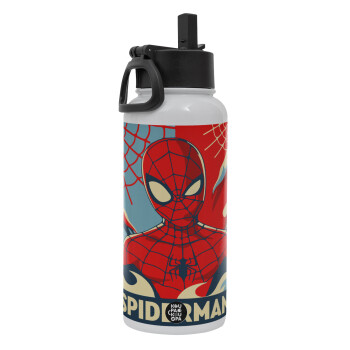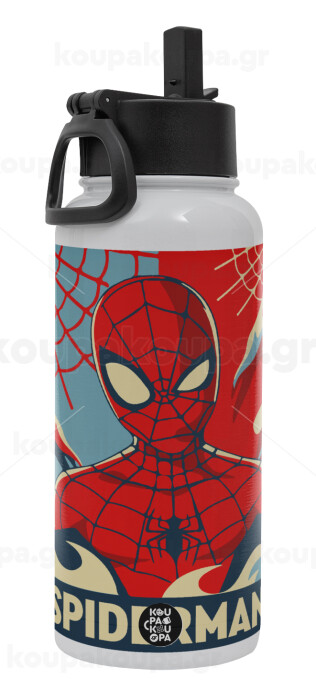 Spiderman kid, Μεταλλικό παγούρι θερμός Λευκό με καλαμάκι και χερούλι (Stainless steel), διπλού τοιχώματος, 950ml