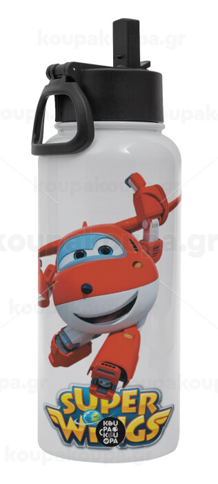 Super Wings, Μεταλλικό παγούρι θερμός Λευκό με καλαμάκι και χερούλι (Stainless steel), διπλού τοιχώματος, 950ml