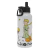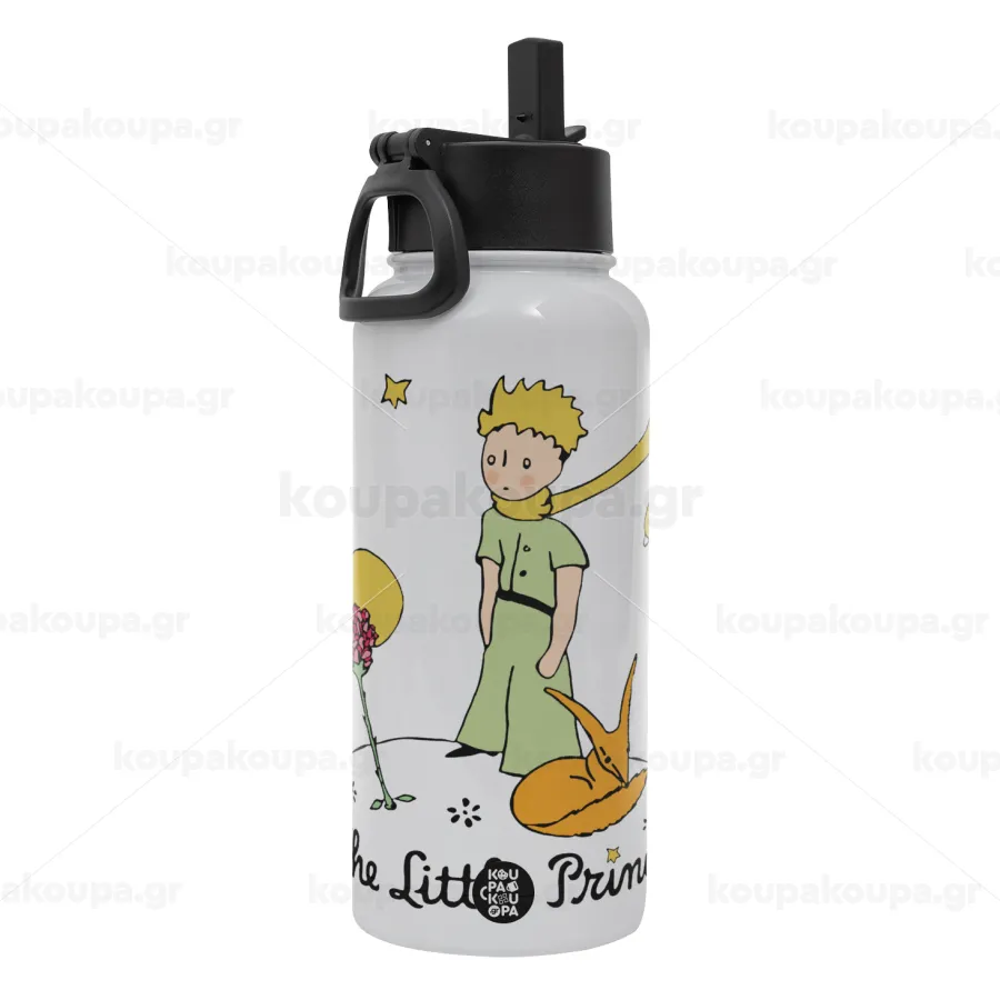 Ο μικρός πρίγκιπας classic, Μεταλλικό παγούρι θερμός Λευκό με καλαμάκι και χερούλι (Stainless steel), διπλού τοιχώματος, 950ml