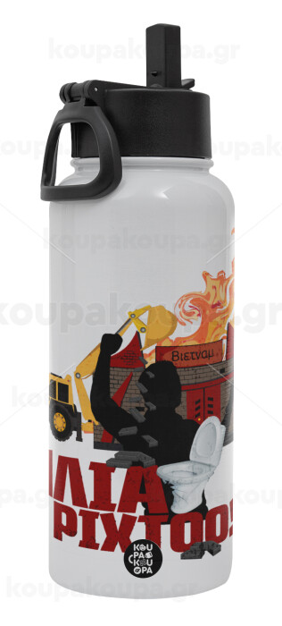 Ηλία ρίχτοοο!!!, Μεταλλικό παγούρι θερμός Λευκό με καλαμάκι και χερούλι (Stainless steel), διπλού τοιχώματος, 950ml