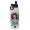 Dua lipa, Μεταλλικό παγούρι θερμός Λευκό με καλαμάκι και χερούλι (Stainless steel), διπλού τοιχώματος, 950ml