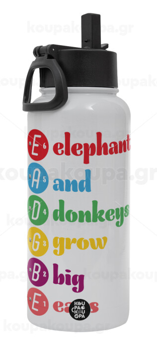 Elephants And Donkeys Grow Big Ears, Μεταλλικό παγούρι θερμός Λευκό με καλαμάκι και χερούλι (Stainless steel), διπλού τοιχώματος, 950ml
