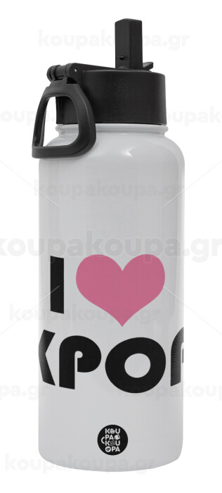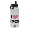 I Love KPOP, Μεταλλικό παγούρι θερμός Λευκό με καλαμάκι και χερούλι (Stainless steel), διπλού τοιχώματος, 950ml