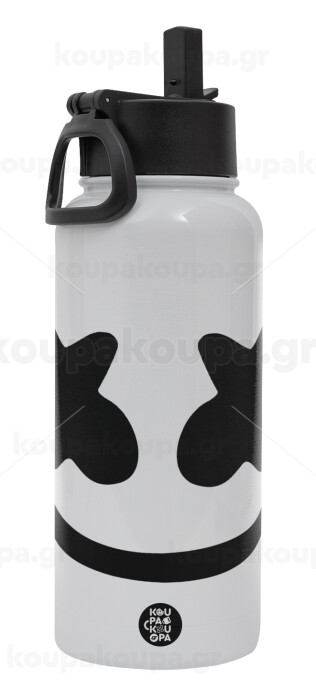 Marshmello, Μεταλλικό παγούρι θερμός Λευκό με καλαμάκι και χερούλι (Stainless steel), διπλού τοιχώματος, 950ml