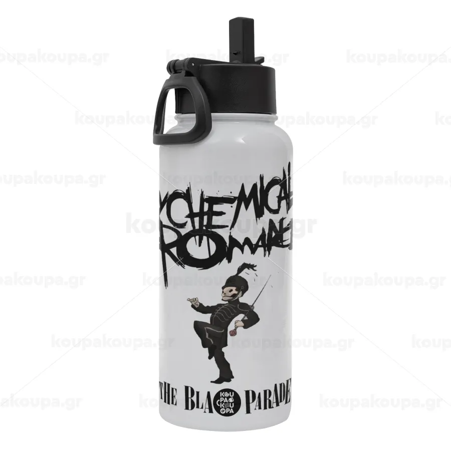 My Chemical Romance Black Parade, Μεταλλικό παγούρι θερμός Λευκό με καλαμάκι και χερούλι (Stainless steel), διπλού τοιχώματος, 950ml
