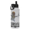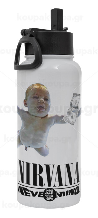 Nirvana nevermind, Μεταλλικό παγούρι θερμός Λευκό με καλαμάκι και χερούλι (Stainless steel), διπλού τοιχώματος, 950ml