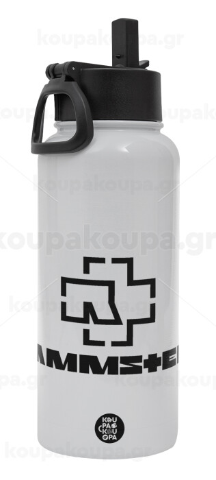 Rammstein, Μεταλλικό παγούρι θερμός Λευκό με καλαμάκι και χερούλι (Stainless steel), διπλού τοιχώματος, 950ml
