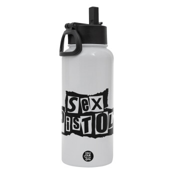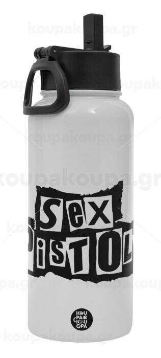 Sex Pistols, Μεταλλικό παγούρι θερμός Λευκό με καλαμάκι και χερούλι (Stainless steel), διπλού τοιχώματος, 950ml