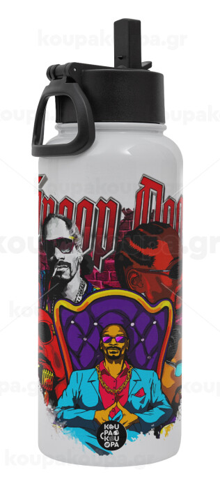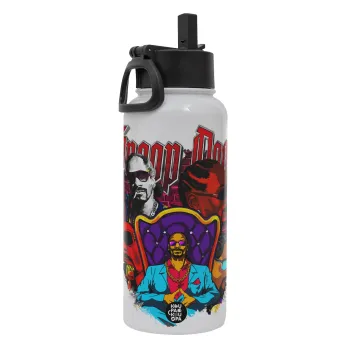 Snoop Dogg, Μεταλλικό παγούρι θερμός Λευκό με καλαμάκι και χερούλι (Stainless steel), διπλού τοιχώματος, 950ml