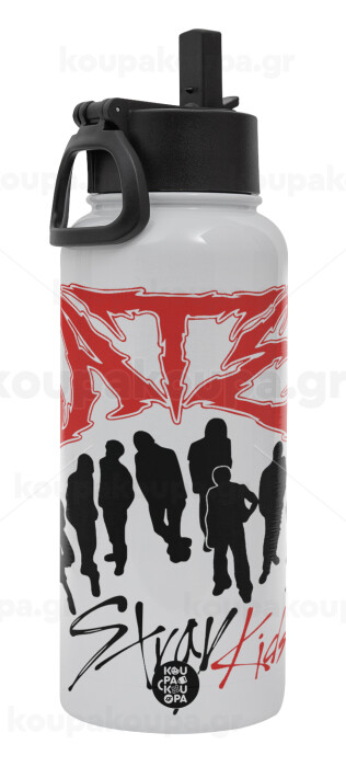 Stray Kids Boy band, Μεταλλικό παγούρι θερμός Λευκό με καλαμάκι και χερούλι (Stainless steel), διπλού τοιχώματος, 950ml