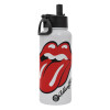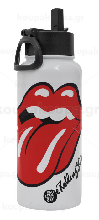 The rolling stones, Μεταλλικό παγούρι θερμός Λευκό με καλαμάκι και χερούλι (Stainless steel), διπλού τοιχώματος, 950ml