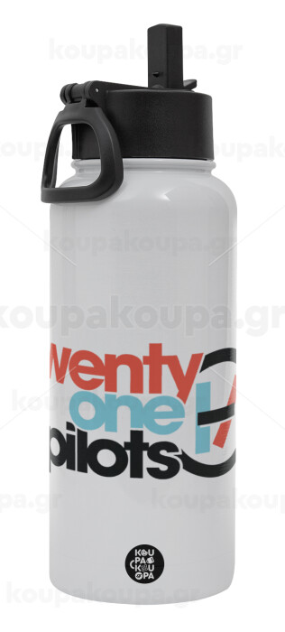 Twenty one pilots, Μεταλλικό παγούρι θερμός Λευκό με καλαμάκι και χερούλι (Stainless steel), διπλού τοιχώματος, 950ml