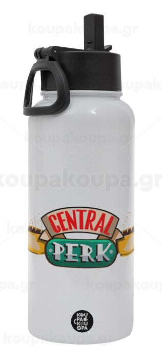 Central perk, Μεταλλικό παγούρι θερμός Λευκό με καλαμάκι και χερούλι (Stainless steel), διπλού τοιχώματος, 950ml