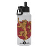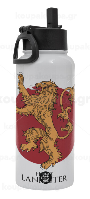 House Lannister GOT, Μεταλλικό παγούρι θερμός Λευκό με καλαμάκι και χερούλι (Stainless steel), διπλού τοιχώματος, 950ml