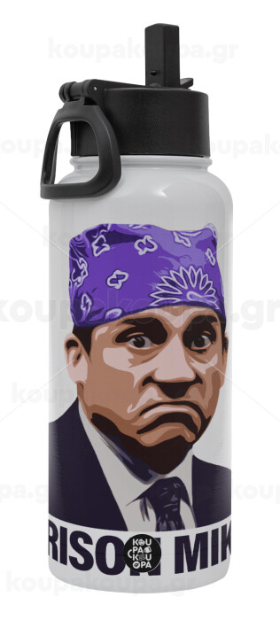 Prison Mike The office, Μεταλλικό παγούρι θερμός Λευκό με καλαμάκι και χερούλι (Stainless steel), διπλού τοιχώματος, 950ml