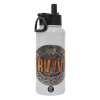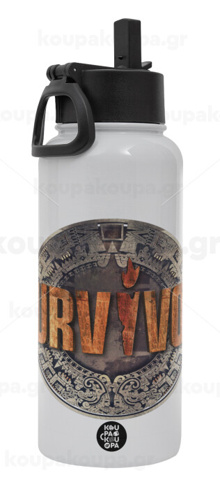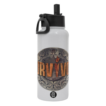 Survivor, Μεταλλικό παγούρι θερμός Λευκό με καλαμάκι και χερούλι (Stainless steel), διπλού τοιχώματος, 950ml