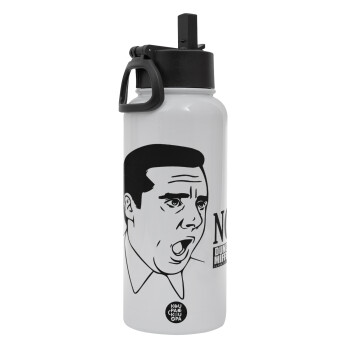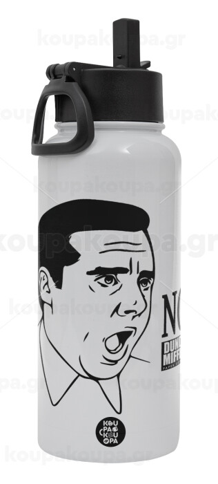 The office Michael NO!!!, Μεταλλικό παγούρι θερμός Λευκό με καλαμάκι και χερούλι (Stainless steel), διπλού τοιχώματος, 950ml