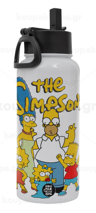 The Simpsons, Μεταλλικό παγούρι θερμός Λευκό με καλαμάκι και χερούλι (Stainless steel), διπλού τοιχώματος, 950ml