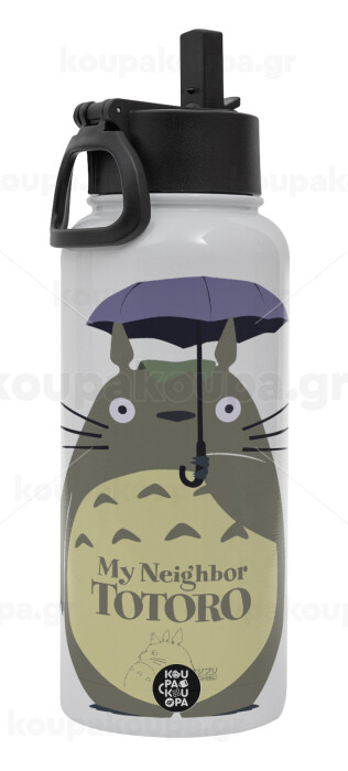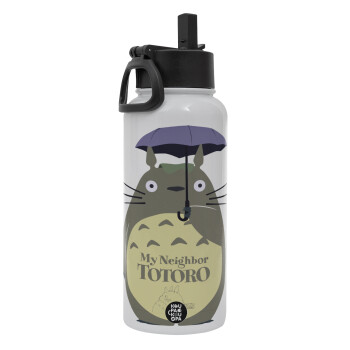 Totoro from My Neighbor Totoro, Μεταλλικό παγούρι θερμός Λευκό με καλαμάκι και χερούλι (Stainless steel), διπλού τοιχώματος, 950ml