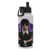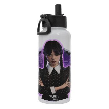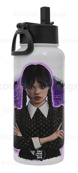 Wednesday moonlight, Μεταλλικό παγούρι θερμός Λευκό με καλαμάκι και χερούλι (Stainless steel), διπλού τοιχώματος, 950ml