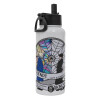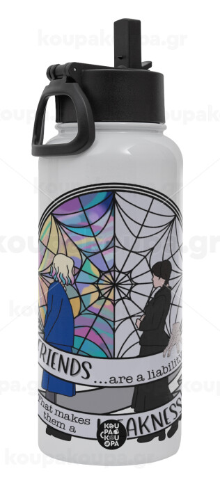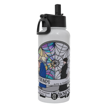 Wednesday window, Μεταλλικό παγούρι θερμός Λευκό με καλαμάκι και χερούλι (Stainless steel), διπλού τοιχώματος, 950ml