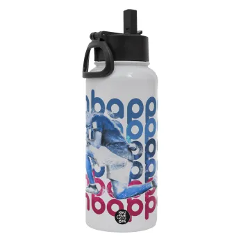 Κιλιάν Μπαπέ, Μεταλλικό παγούρι θερμός Λευκό με καλαμάκι και χερούλι (Stainless steel), διπλού τοιχώματος, 950ml