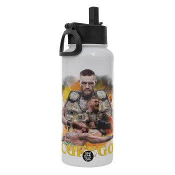 Conor McGregor Notorious, Μεταλλικό παγούρι θερμός Λευκό με καλαμάκι και χερούλι (Stainless steel), διπλού τοιχώματος, 950ml