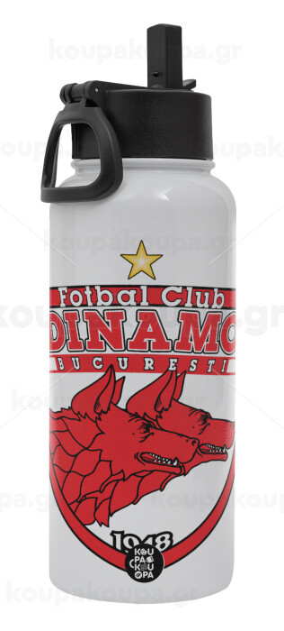FC Dinamo Bucuresti, Μεταλλικό παγούρι θερμός Λευκό με καλαμάκι και χερούλι (Stainless steel), διπλού τοιχώματος, 950ml