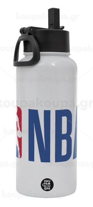 NBA Classic, Μεταλλικό παγούρι θερμός Λευκό με καλαμάκι και χερούλι (Stainless steel), διπλού τοιχώματος, 950ml