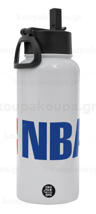 NBA, Μεταλλικό παγούρι θερμός Λευκό με καλαμάκι και χερούλι (Stainless steel), διπλού τοιχώματος, 950ml