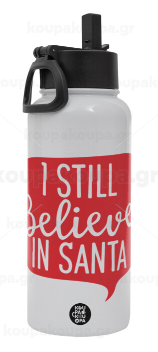 Ι still believe in santa, Μεταλλικό παγούρι θερμός Λευκό με καλαμάκι και χερούλι (Stainless steel), διπλού τοιχώματος, 950ml