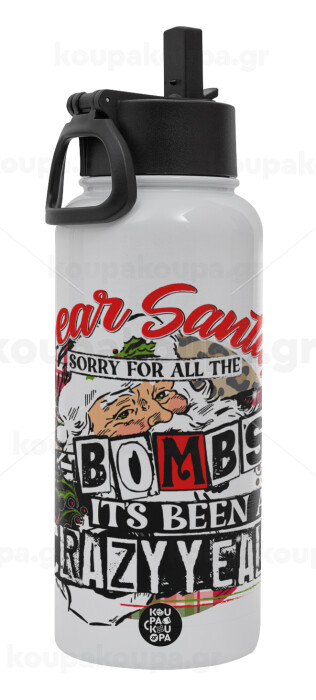 Dear Santa, sorry for all the F-bombs, Μεταλλικό παγούρι θερμός Λευκό με καλαμάκι και χερούλι (Stainless steel), διπλού τοιχώματος, 950ml