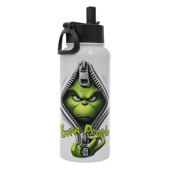 Grinch, eww people, Μεταλλικό παγούρι θερμός Λευκό με καλαμάκι και χερούλι (Stainless steel), διπλού τοιχώματος, 950ml