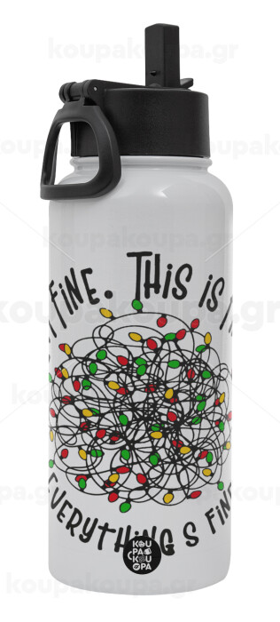 It's Fine I'm Fine Everything Is Fine, Μεταλλικό παγούρι θερμός Λευκό με καλαμάκι και χερούλι (Stainless steel), διπλού τοιχώματος, 950ml