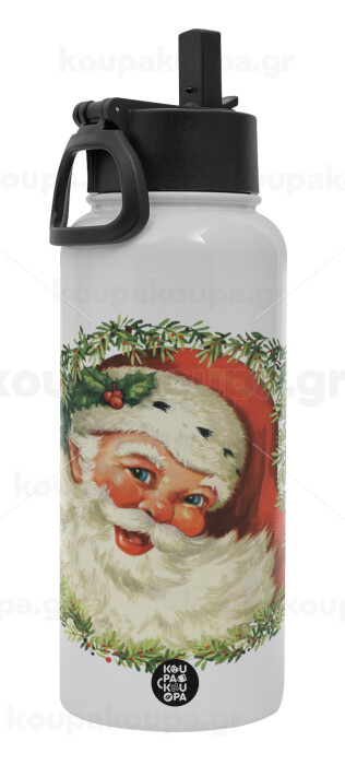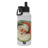 Santa Claus, Μεταλλικό παγούρι θερμός Λευκό με καλαμάκι και χερούλι (Stainless steel), διπλού τοιχώματος, 950ml